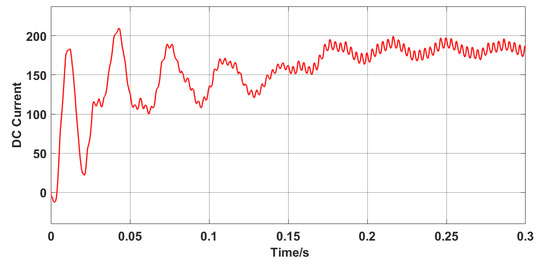 The DC side’s current is shown in Figure 9. When the DC side’s current reached the steady state, it was controlled to fluctuate within a small range, which was allowed with the normal operating conditions.