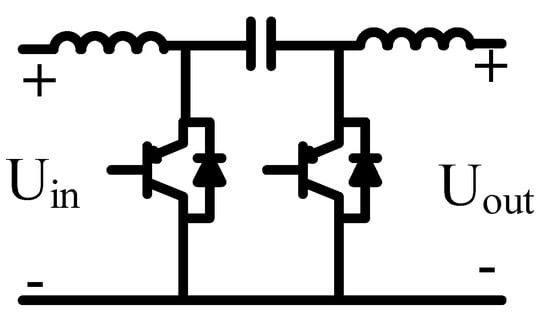 The half-bridge bidirectional DC/DC converters are the most common non-isolated converters. These bidirectional DC/DC converters are simple in structure. Still, if the system works in continuous current mode, the reverse recovery of the diodes is a severe problem, and the current is intermittent. The peak current flowing through the switching tubes will be massive. The topology of the half-bridge bidirectional DC/DC converter is shown in Figure 6.