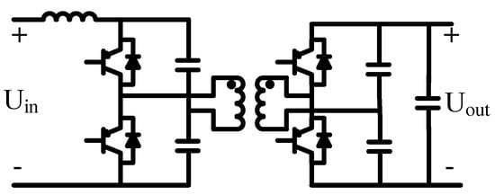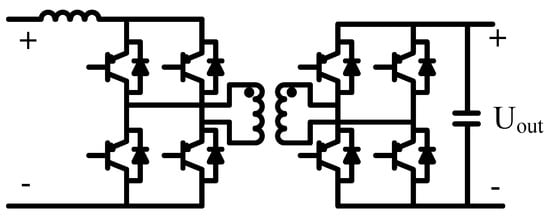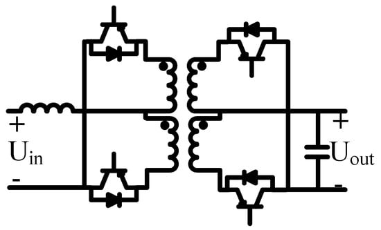 Isolated push–pull bidirectional DC/DC converters are relatively simple in structure. Still, because of the large switching voltage spikes caused by transformer leakage, the switching tubes operate under harsh conditions and are suitable for low- and medium-voltage applications. The topology of the isolated push–pull bidirectional DC/DC converter is shown in Figure 12.