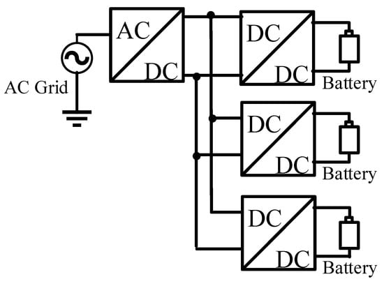 A system in a multi-converter integrated system where each cell is controlled by a separate DC/DC converter, which is finally brought together on the DC bus such as Figure 14. This technical solution allows for the separate control of each battery and the individual removal of faulty battery clusters. This solution suffers from converter ringing and resonance problems which need to be eliminated using control. In addition, this solution has some disadvantages in terms of system cost and efficiency due to the most power electronics required.