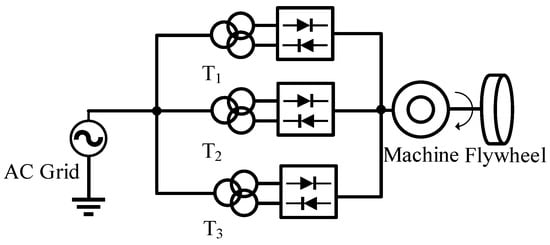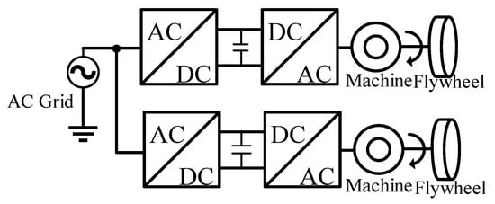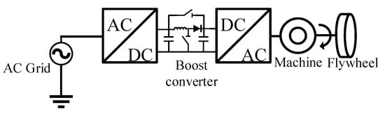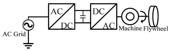 The flywheel needs to obtain a high speed through the motor, making flywheel energy storage require a power electronic converter to regulate the speed of the motor such as Figure 22. Direct AC converters are widely available for motor speed regulation circuits. The converter can be used for both load and power conversion, meeting the requirements of energy storage systems that require a bi-directional flow of energy. The topology is highly efficient as the energy only needs to be converted once.