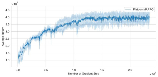 | Initialize actor network, , and critic network, , with weights and Initialize batch size B, iterative step ,, and done = 0 for episode = 0, 1, 2, … until convergence do while not done do initialize actor and critic states for all agents i, perform Sampling from normal distribution end for Send to the simulation environment, obtain Save Compute the advantage function, , and return, end for for for k = 0, …, PPO epoch perform Compute Update network parameters using the gradient method end for |