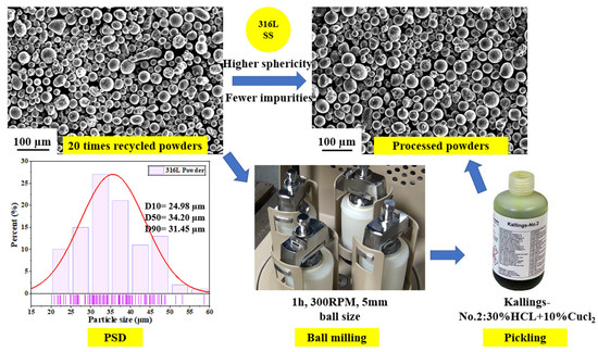 The processed powders can be used for manufacturing the products by the following AM technology, such as powder bed fusion, direct energy deposition, material extrusion, material jetting, sheet lamination [21,22,23,24,25].