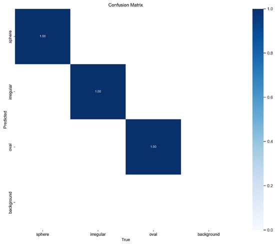 Figure 9 is the screenshot of the training results. Figure 9 demonstrates the favorable accuracy of the training results, enabling precise identification of sphere, oval, and irregular powders. This capability is valuable in evaluating the quality of the processed powder.