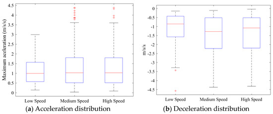 Acceleration and deceleration distribution of low, medium, and high-speed trip cycles.