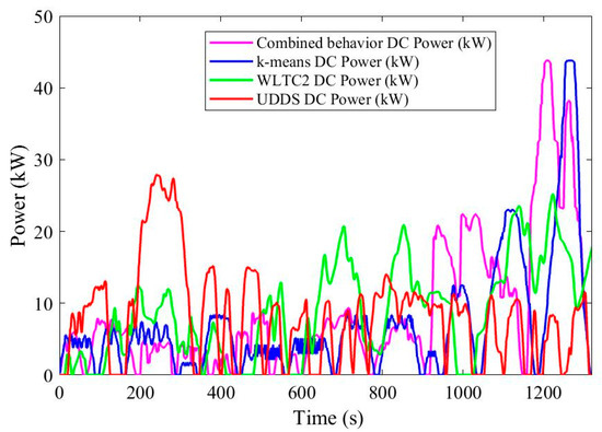 Comparison of power consumption between WLTC-2, UDDS, and AASU candidate DCs by RSBS and k-means methods.