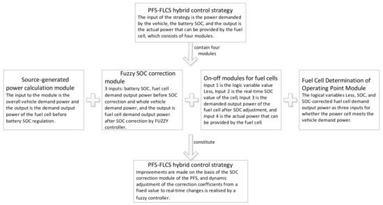 The PFS consists of four modules: the fuel cell on/off control module, the source-generated power calculation module, the SOC power correction module, and the fuel cell operating-point-determination module.