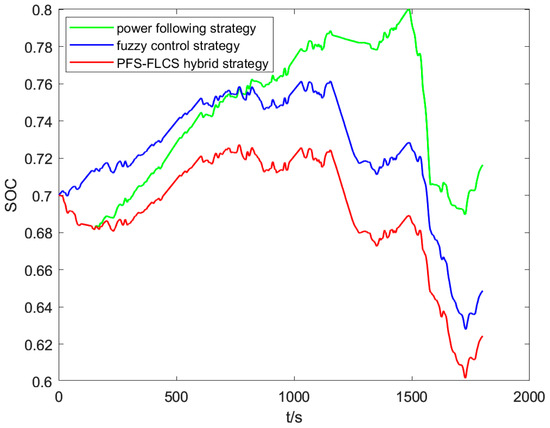 The simulation results of battery SOC with different control strategies.