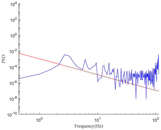 First, a section of pavement containing different speeds and different pavement classes is constructed by using the triangular level method [31]. Second, the pavement identification model is obtained by taking the dynamics model of the reference model of the whole vehicle improvement canopy as the main body, and using the transfer function relationship between the CVD continuously adjustable semi-active control strategy, the dynamic travel of the parallel riser suspension, and the input of the pavement. Finally, pavement identification is carried out on the constructed hybrid pavement, and the pavement classes are classified based on the obtained signals. Figure 5 shows the time-domain model of the class B pavement constructed by the triangular level method, while the power spectral density is shown in Figure 6.