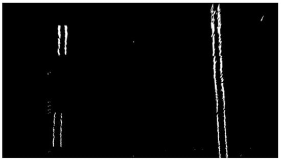 The purpose of preprocessing was to remove noise and information that was not related to the detection target. After the original image optimization, ROI extraction, inverse perspective transformation, and binary image edge detection, the processed lane line image can be obtained, and the results are found in Figure 7.