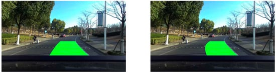 Since the least-squares method fitted the lane lines by traversing all the data only once, this method was less computationally intensive, but led to poor interference immunity. This method extracted lane lines based on fixed colors, and could be easily affected by the environment; as a consequence, errors and fitting jumps would be induced. The application of the Kalman filtering algorithm reduced this effect and fitted the lane lines more accurately [31]. Figure 11 is a comparison chart of lane-line-detection effect, and it can be seen that the application of Kalman filtering could improve the robustness of lane-line detection.