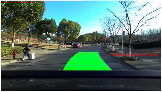 The fitting algorithms applicable to the curved lane were mainly random sampling, the consistent RANSAC method, the Bessel curve fitting method, and the polynomial fitting method based on least squares. Given that the curvature of the lane lines in the curves within the urban roads would not change quickly, the lane line could be approximated as parabolic. The least-squares method was used in this paper to fit the lane lines [29,30].