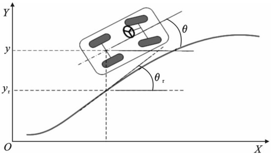 In Formula (17), (x0, y) and (xa, ya) represent the coordinates of the contact points a and d of the rear wheels, respectively. L denotes the wheelbase, and Lrw represents the rear wheel track width.