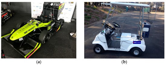(a) Electrical vehicle designed by RMIT University students. (b) Autonomous vehicle with control software designed by RMIT University students.