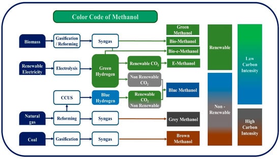 - Tabibian, S.S.; Sharifzadeh, M. Statistical and analytical investigation of methanol applications, production technologies, value-chain and economy with a special focus on renewable methanol. Renew. Sustain. Energy Rev. 2023, 179, 113281. [Google Scholar] [CrossRef]