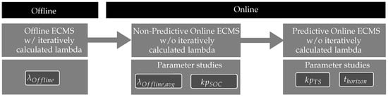 - In [32], adaptation is realized considering future energy demand with a dynamic prediction horizon. An improvement between 0.3% and 4% compared to the non-predictive Online ECMS is achieved.