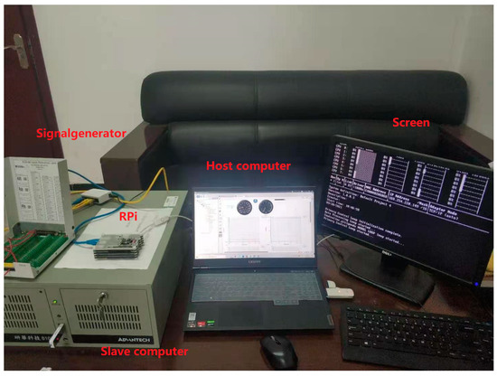 The hardware-in-the-loop simulation platform is built using the Ni-PXI real-time system, and the fault-tolerant control algorithm is compiled and downloaded to the raspberry controller. The designed vehicle model needs to be deployed to the real-time system through VeriStrand software, and then the board can be configured and the input and output variables can be mapped. The HIL test platform is shown in Figure 8.