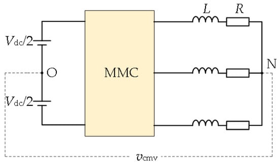 The CMV of MMC, shown in Figure 2, is the voltage difference vcmv between the neutral point of the DC side and the neutral point of the load side, which is equal to the sum of the three phase output phase voltages.