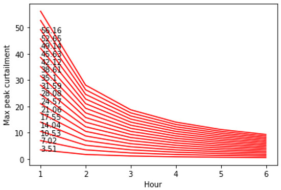 Level of peak curtailment the battery sizes referenced in Figure 6 can sustain over extended periods.