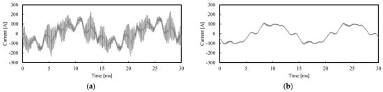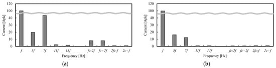 The harmonic currents that are the problem can be broadly classified into low-order harmonic currents (mainly fifth and seventh harmonics) caused by harmonic components of the back electromotive force (back-EMF) and nonlinearity of the inverter, and high-order carrier harmonic currents caused by the pulse width modulation (PWM) of the inverter [4,7]. Many studies have focused on control approaches, proposing low-order harmonic current suppression methods using proportional-integral control with resonant control (PI-R) and multiple synchronous reference frames (MSRFs) [3,4], and carrier harmonic current suppression methods using space vector pulse width modulation (SVPMW) [1,2,7].