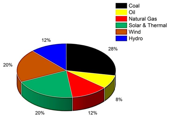 As stated in the Introduction, Morocco aims to replace all its diesel buses with electric buses in 2030; hence, the authors decided to conduct the LCA considering the electric buses charged by the Moroccan electricity generation scenario of 2030, shown in Figure 3, published by the national authorities in their National Low Carbon Strategy of 2050 [7], Cox et al. [19], and the International Energy Agency [15,20].