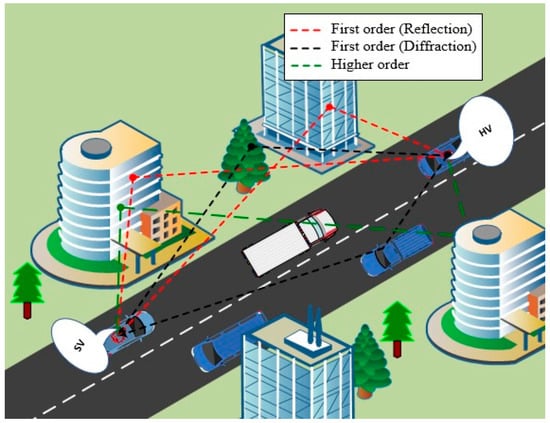 7], the propagation time and angular characteristics of the FOMPs are utilized to allow a sensing vehicle (SV) to localize the hidden vehicle (HV). Unfortunately, in multipath environments (i.e., urban areas), the propagation phenomenon of the signal between two blocked transceivers is a combination of FOMPs and HOMPs [