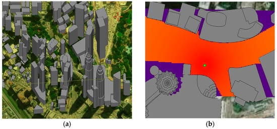 Figure 3a. The values of electromagnetic (EM) parameters of buildings, leaves, and objects were set based on [