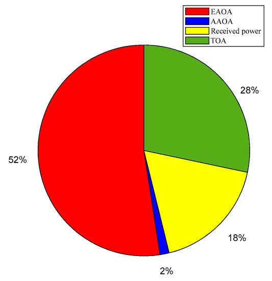 29]. However, AOA can be measured horizontally or vertically; they are called azimuth and elevation respectively. Basically, the azimuth angle of arrival (AAOA) is related to the layout of the surrounding environment, while the elevation angle of arrival (EAOA) is related to the propagation path length, especially when the transmitter and receiver have different heights.