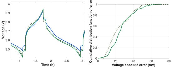 Accurate estimation of a lithium-ion cell’s voltage behavior over time is paramount in most applications. In fact, the efficiency of thermal management, energy management, and balancing strategies depends heavily on the accuracy of the estimate [37,38,39,40,41]. In a large number of industrial applications where real-time control is required, electrical models are preferred over electrochemical [42]. Their ability to accurately emulate voltage with limited computational cost makes them suitable for embedded applications. In addition, they can be characterized using non-destructive methods [43,44,45].