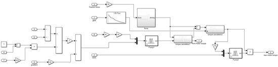 The torque distribution control strategy based on fuzzy control established by MATLAB/Simulink software is shown in Figure 13.