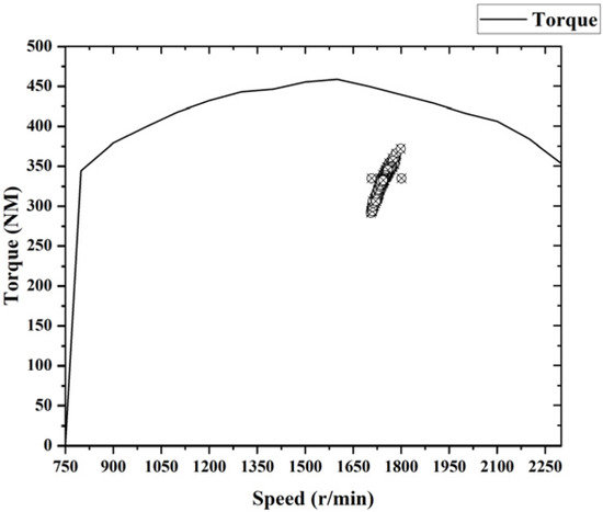 The rear-drive system adopts the fuzzy control-based torque distribution control strategy, based on the analysis of the tractor plowing conditions, as shown in Figure 21, the tractor plowing operation engine speed fluctuations are not large, smooth operation, while the engine torque in the engine high efficiency torque operating range, the economy is better.