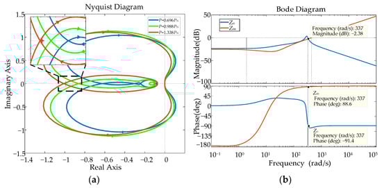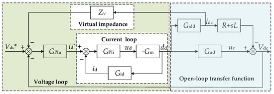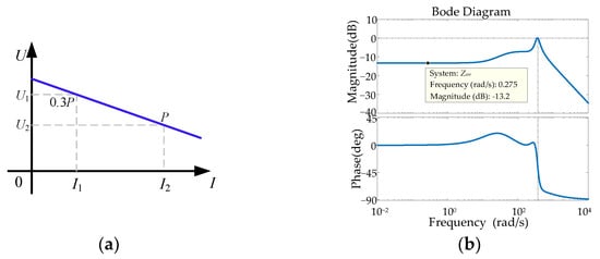 - The power sharing controller parameters based on virtual impedance control are designed, including the current loop, voltage loop proportional integral (PI) controller parameters, and virtual impedance parameters. Considering the bandwidth and stability of the current loop and voltage loop, the parameters of the PI controller are designed. According to the principle of shielding the natural output impedance of the system and ensuring the fluctuation range of the DC bus voltage, the virtual impedance is designed to realize the stability of the DC bus voltage and the power sharing of multiple controllable rectifier modules.