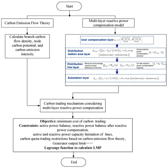 Flowchart on carbon trading considering multi-layer reactive power compensation.