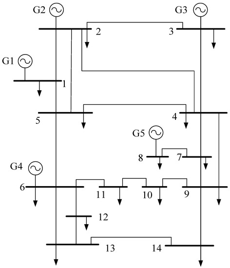 The modified 14-bus system is applied to verify the carbon market trading model considering multi-layer reactive power compensation. From Figure 2, the topological structure of the power system can be known, providing system data such as the node where the generators are located, the nodes connected between branches, and the number of loads for programming.