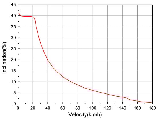 It can be seen from Figure 13, that the maximum climbable gradient of the mini−electric trucks is 35%, which meets the dynamic performance requirements: the maximum climbable gradient is no less than 35%.
