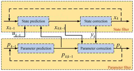In addition to using the EKF to estimate the information on the rotor’s position and speed, most people have used the EKF for online parameter estimation [74,75,77,82]. In [77], two EKF-based online parameter identification schemes were proposed, and a general formulation for online parameter estimation was proposed, which can be applied to any electrical parameter. There was an obvious improvement in identifying the stator’s resistance, and it took the influence of noise on the system into account, improving the robustness of the system. Figure 5 shows a structural block diagram of a double extended Kalman filter. In addition to online estimation of the stator’s resistance and inductance, the estimation of the rotor’s flux linkage has also been studied [78]. In addition, some have combined the EKF and adaptive linear active disturbance rejection control [75] to form a degree-of-freedom control strategy, which performed well in terms of dynamic response and antidisturbance performance. However, the shortcomings are also obvious, such as the complex structure, the large amount of calculation, and the relatively expensive cost.