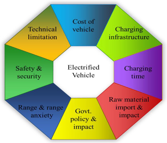 At present, electric vehicles (EVs) represent less than 1% of the total Indian automotive vehicles (293 million), of which, 95% are two-wheelers [9]. However, due to the high import dependency on fossil fuels, the number of electric two- and three-wheel will rise in the near future [10]. The total trade balance of the nation would improve if the Indian vehicle industry were to become independent of oil and natural gas [11]. To create an indigenized, sustainable, cleaner, and more economical transportation ecosystem, higher-efficiency vehicles with significantly lower energy consumption and fast-tracking transportation electrification are needed [12]. The creation of effective and computationally efficient engineering tools, design development, and validation efforts for diverse sub-systems, scaling operations, etc., may all lead to advancement. Apart from buying preferences and governmental initiatives, at present, E2Ws are not fully satisfactory for Indian consumers compared to fossil-fuel-based vehicles due to several reasons [13], such as economic reasons, driving range, unique features, and the ease of licensing. The industry is at a crossroads and is undoubtedly preparing for a total transition as a result of the recent disruptions brought on by environmental requirements [14], conscientiousness, and economic viability [15].
