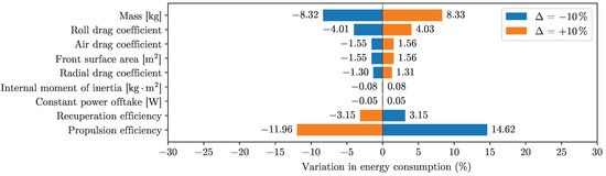Sensitivity analysis—electro-kinetic model parameters, performed with the Hull et al. data, downsampled and interpolated with 1 Hz SUMO simulator (Section 3.3).