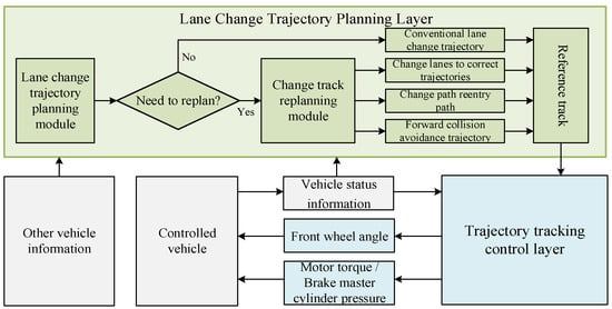 Based on the above lane-change trajectory planning module, lane-change replanning module and trajectory tracking module, the intelligent vehicle-integrated lane-change control is established, as shown in Figure 9.
