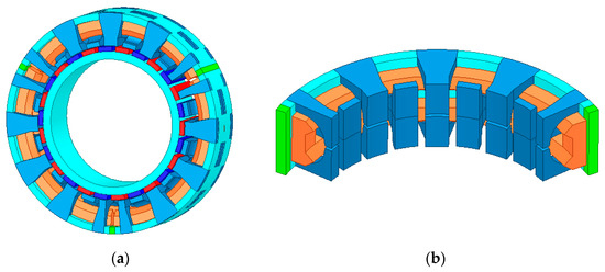The global climate problem is having a profound impact on the Earth’s ecological environment. The comprehensive strategic issues related to climate change, such as politics, economy, science, and diplomacy, have become a huge historical challenge faced by all of mankind. In recent years, electricity, as a secondary clean energy, has shown a significant growth trend in the proportion of energy structure, and the improvement in the level of industrial production electrification has also led to higher requirements for motor design to be put forward. The motor industry will move towards having green and energy-saving qualities and high reliability. Traditional motors generally have shortcomings such as a low power factor and low operating efficiency in practical applications [1,2]. Compared to traditional types of motors, permanent magnet motors have attracted widespread attention from experts and scholars due to their reliable operation, high torque density, low energy consumption, and high efficiency. They have become indispensable key equipment in high-performance power systems and have been widely used in fields such as new energy vehicles and industrial production [3,4,5].