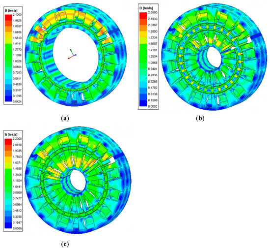 No-load magnetic density cloud diagram. (a) TPMCPM; (b) PMCPM1; (c) PMCPM2.