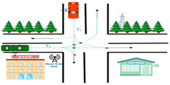 As a consequence, safety measures should be used to divide the time that automobiles arrive at the conflict location. Assume VIP1 may pass through the junction with just a little decrease in OV1, which causes a time delay (DT). The length of the delay varies according to the kind of trajectory. Since T1 and T2 vary in real time, it also varies from vehicle to vehicle and is influenced by the speed and size of each vehicle.