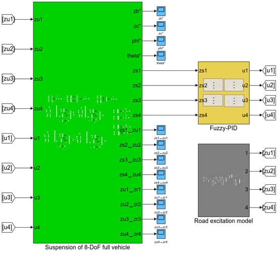 The mathematical model of the active suspension of the 8-DOF full vehicle is established using MATLAB/Simulink, as displayed in