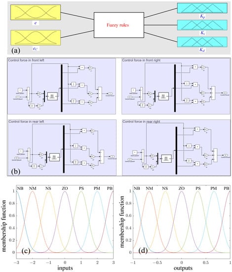 43] designed two independent fuzzy controllers for the front and rear suspensions using an 8-DoF (degree of freedom) full-vehicle model and used a multi-objective Pareto optimal solution to tune the parameters of the fuzzy controller. Eltantawie [