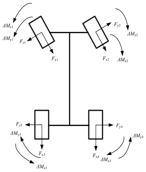 From the automobile theory, it can be seen that the lateral force will gradually decrease when the braking force is changed. Figure 2 illustrates an example of a vehicle turning left to analyze the corresponding forces on the wheels when the braking force is applied. It demonstrates that the yaw moment of the vehicle is positive when turning left.