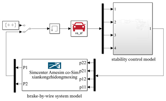 Finally, the vehicle stability control model is built according to the ideal value calculation model of 2-DOF, the additional yaw moment calculation module and the brake pressure distribution module. The joint simulation model is shown in Figure 8.