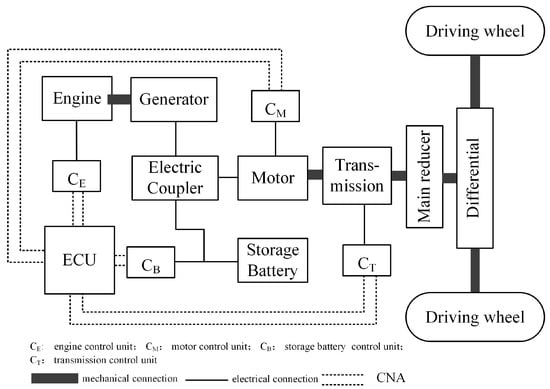 - Pure engine driving mode: Engine → Generator → Electric Coupler → Motor → Transmission Device → Driving Wheel.