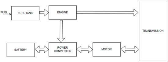 Here, both the engine and electric motor are present, as given in Figure 4. The battery obtains energy through regenerative braking. The transmission can be rotated by both the engine and an electric motor. Regular HEVs cannot be recharged from the utility grid.