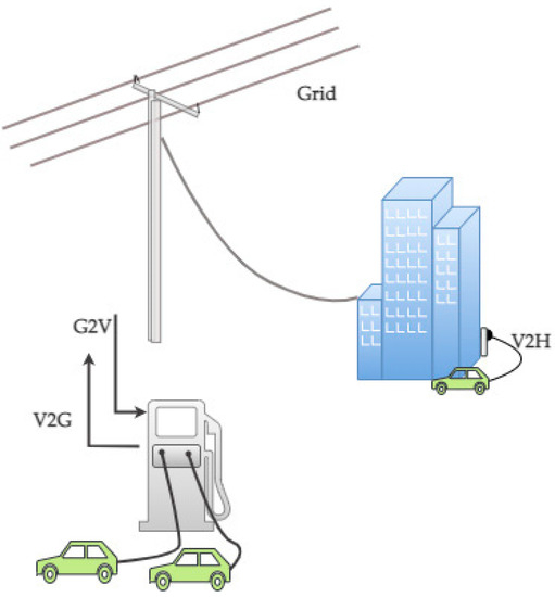 In V2G, the GEV can be wired to the utility grid to use energy from the grid or supply energy to the grid, as shown in Figure 9.