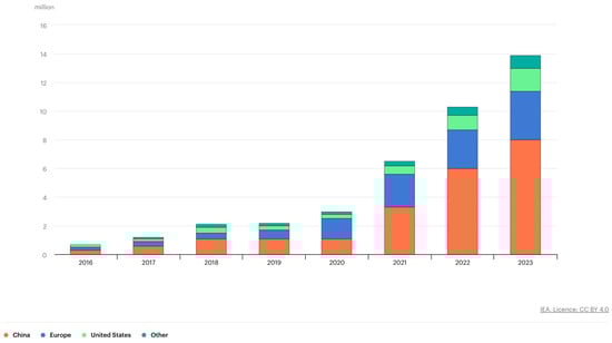 - International Energy Agency. Global EV Outlook 2023, Catching up with Climate Ambitions; International Energy Agency: Paris, France, 2023. [Google Scholar]